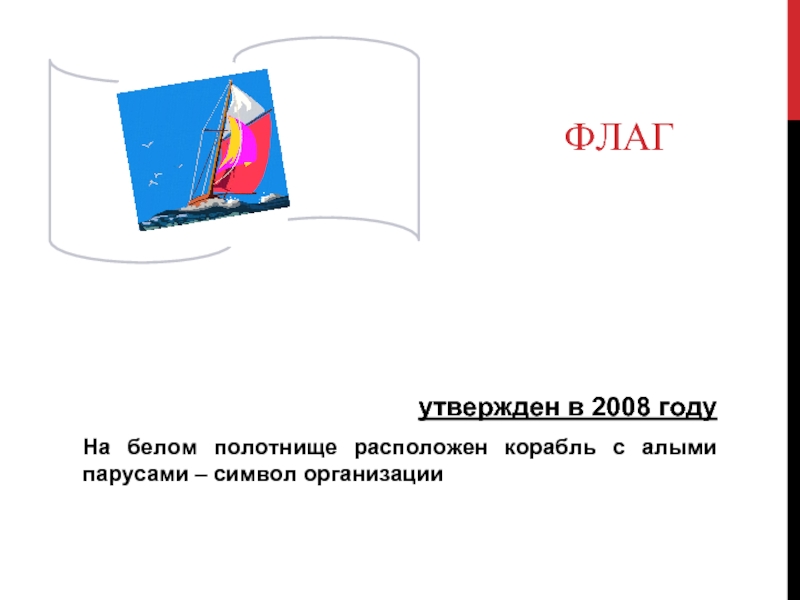 На белом полотнище расположен корабль с алыми парусами