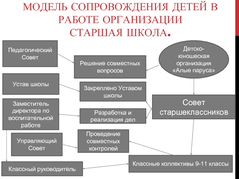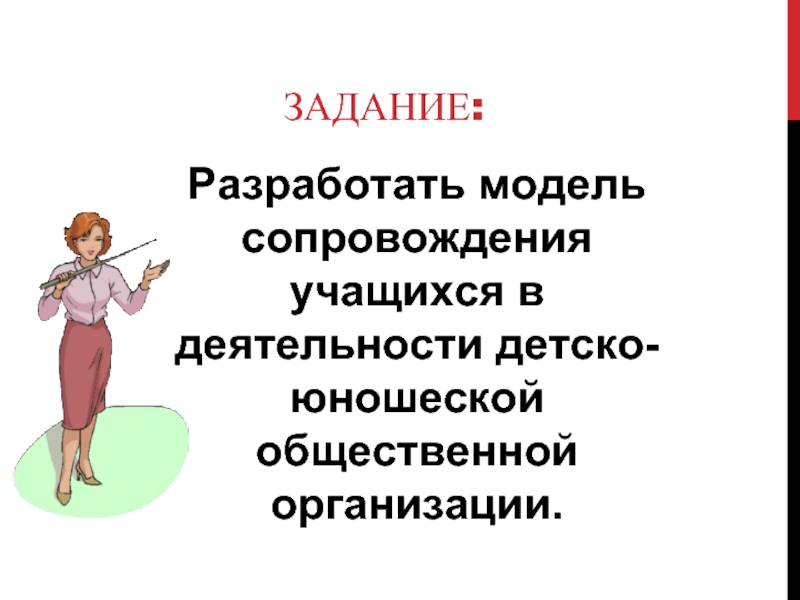 Разработать модель сопровождения учащихся в деятельности детско-юношеской общественной организации.