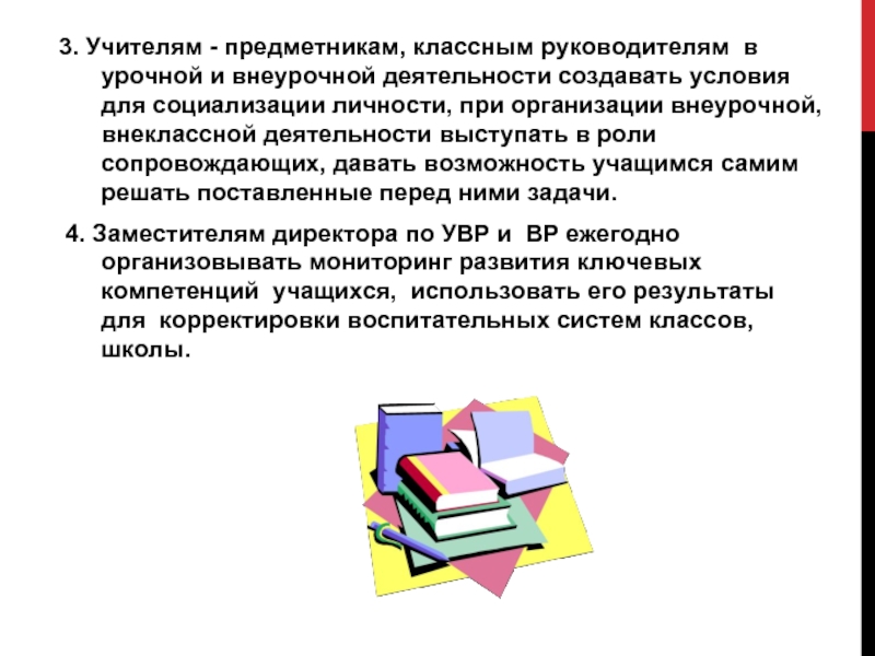 Слайд 33 3. Учителям - предметникам, классным руководителям в урочной и внеурочной