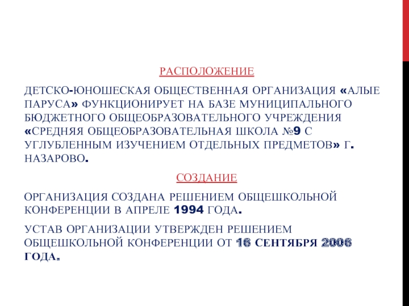 о существовании ДЮОО «Алые паруса»