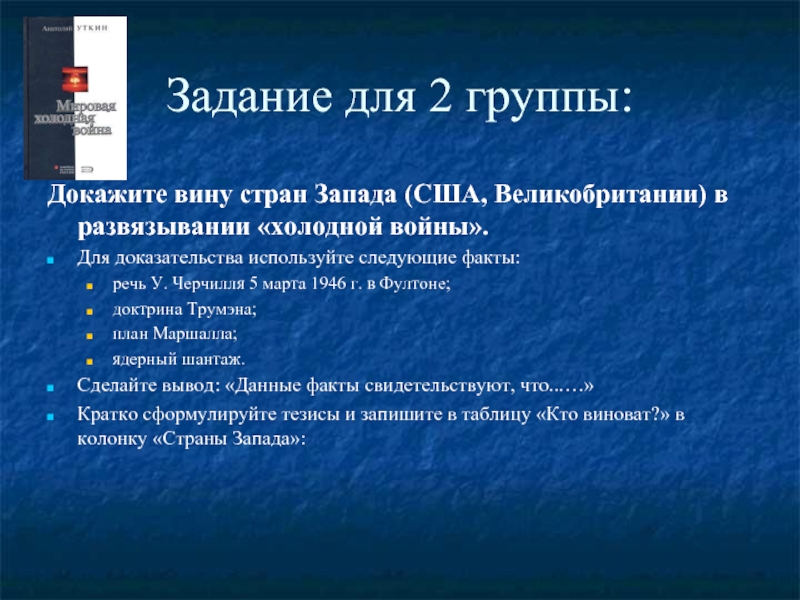 Кратко сформулируйте тезисы и запишите в таблицу «Кто виноват?» в колонку «Страны Запада»: