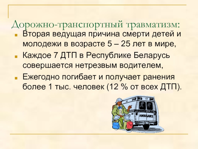 Ежегодно погибает и получает ранения более 1 тыс. человек (12 % от всех ДТП).