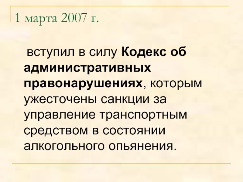 которым ужесточены санкции за управление транспортным средством в состоянии алкогольного опьянения.