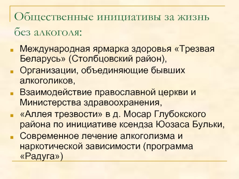 Слайд 28Общественные инициативы за жизнь без алкоголя: