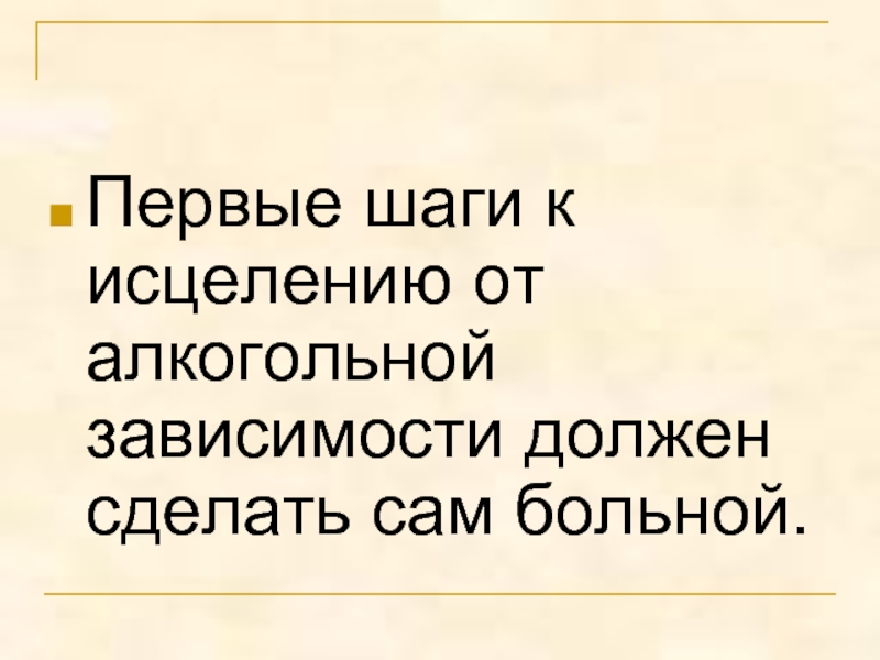 Слайд 32Первые шаги к исцелению от алкогольной зависимости должен сделать сам больной.