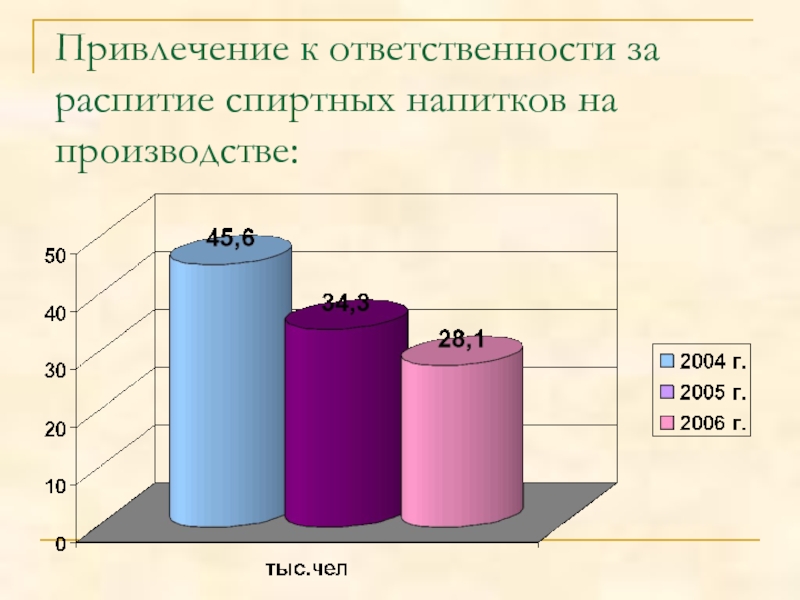 Слайд 21Привлечение к ответственности за распитие спиртных напитков на производстве: