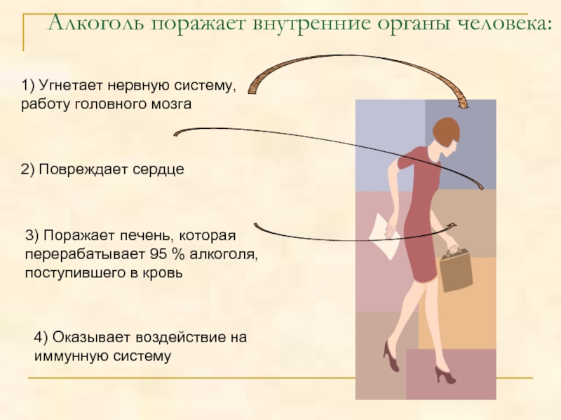 Слайд 12Алкоголь поражает внутренние органы человека: