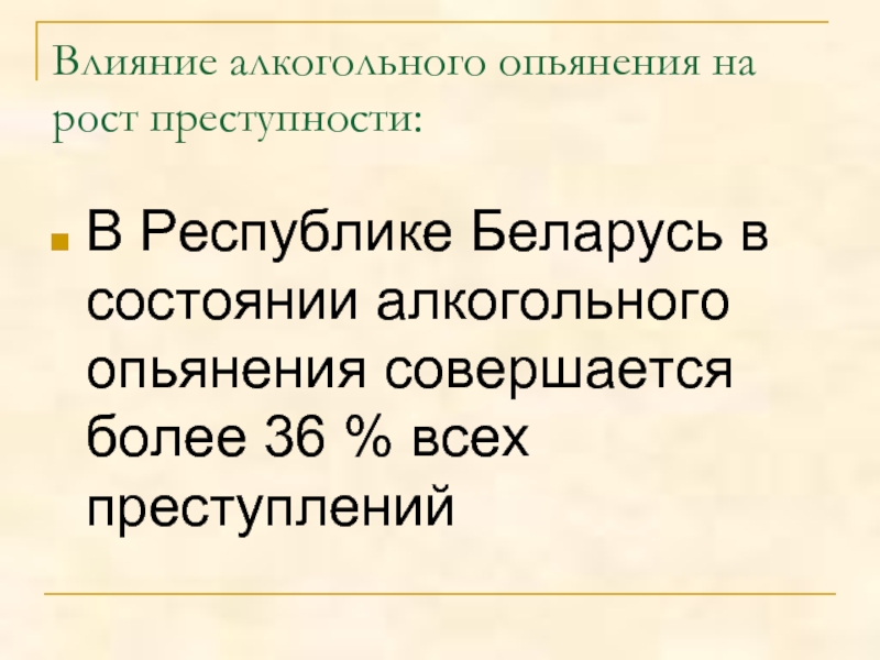 Слайд 24Влияние алкогольного опьянения на рост преступности: