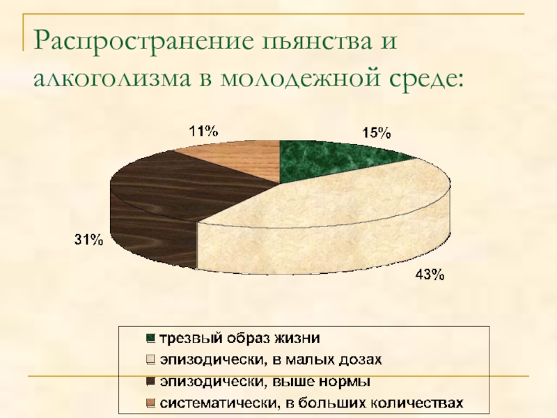 Слайд 9Распространение пьянства и алкоголизма в молодежной среде: