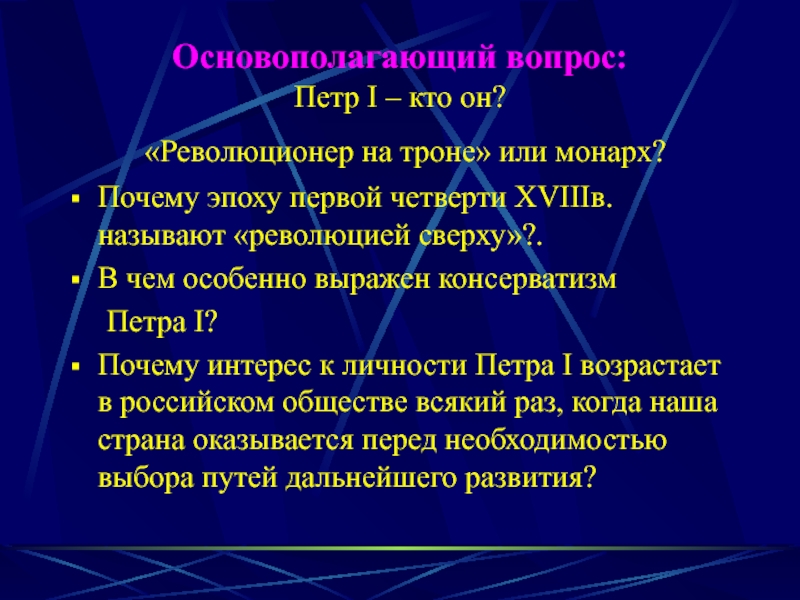 Почему интерес к личности Петра I возрастает в российском обществе всякий раз, когда наша страна оказывается перед необходимостью выбора путей дальнейшего развития?