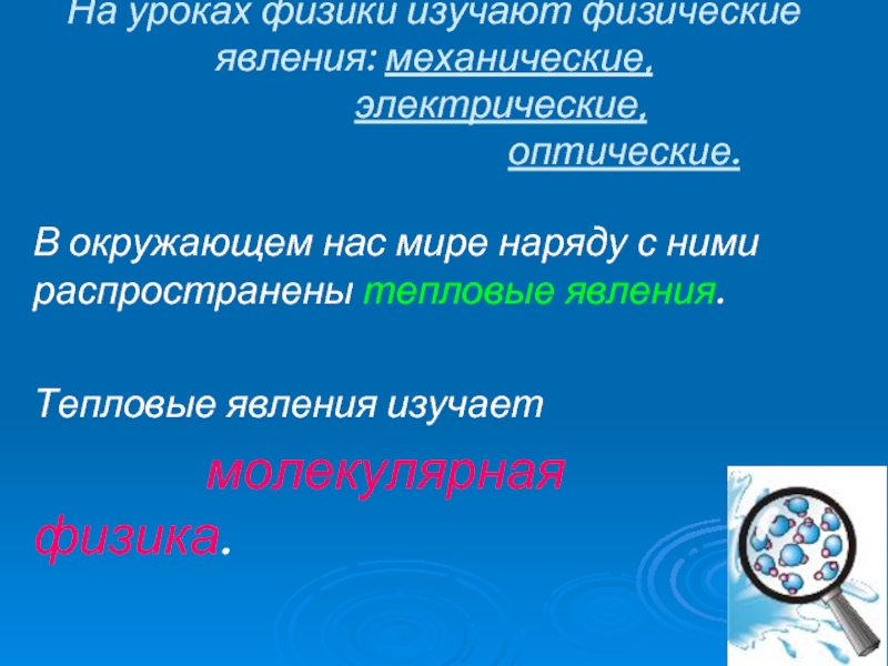 В окружающем нас мире наряду с ними распространены тепловые явления.