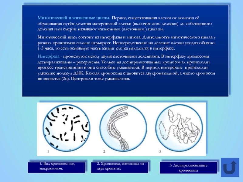 Передача наследственной информации происходит с помощью хромосом, расположенных в ядре клетки. Хромосомы состоят из ДНК и белков. Комплекс ДНК с белком называется хроматином. Каждая хромосома перед делением состоит из двух нитей – хроматид, соединяющихся между собой в области перетяжки – центромеры.