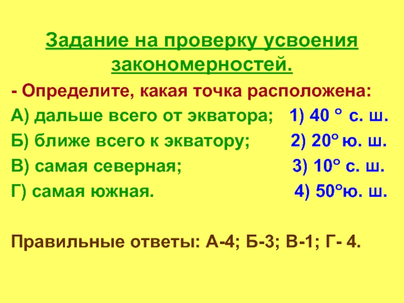 Слайд 7Задание на проверку усвоения закономерностей.