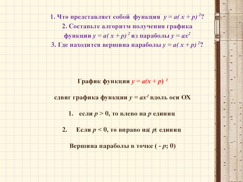 сдвиг графика функции у = ах² вдоль оси ОХ