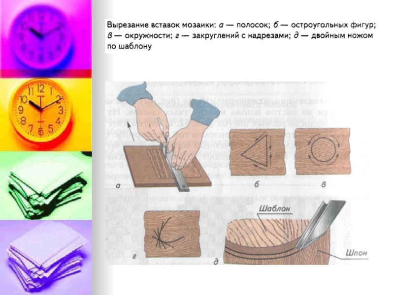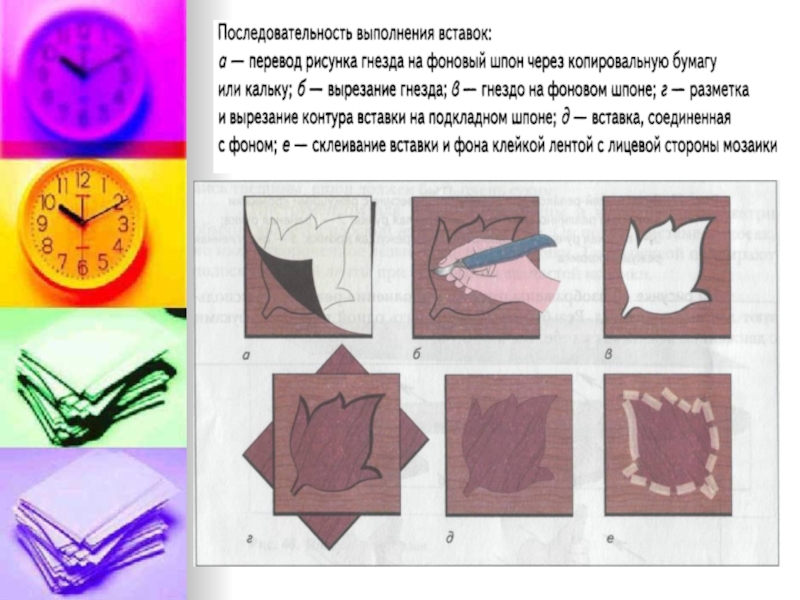 Виды мозаики: инкрустация, интарсия, маркетри и блочная мозаика.