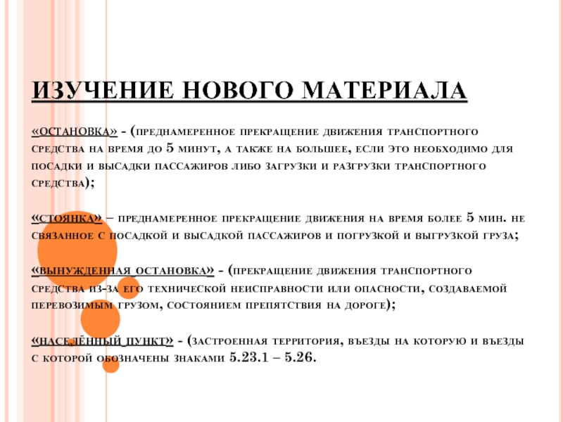 «вынужденная остановка» - (прекращение движения транспортного средства из-за его технической неисправности или опасности, создаваемой перевозимым грузом, состоянием препятствия на дороге);