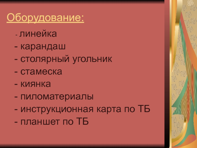 Воспитывать бережное отношение к школьному имуществу (столярным инструментам и верстакам), воспитывать взаимопомощь.