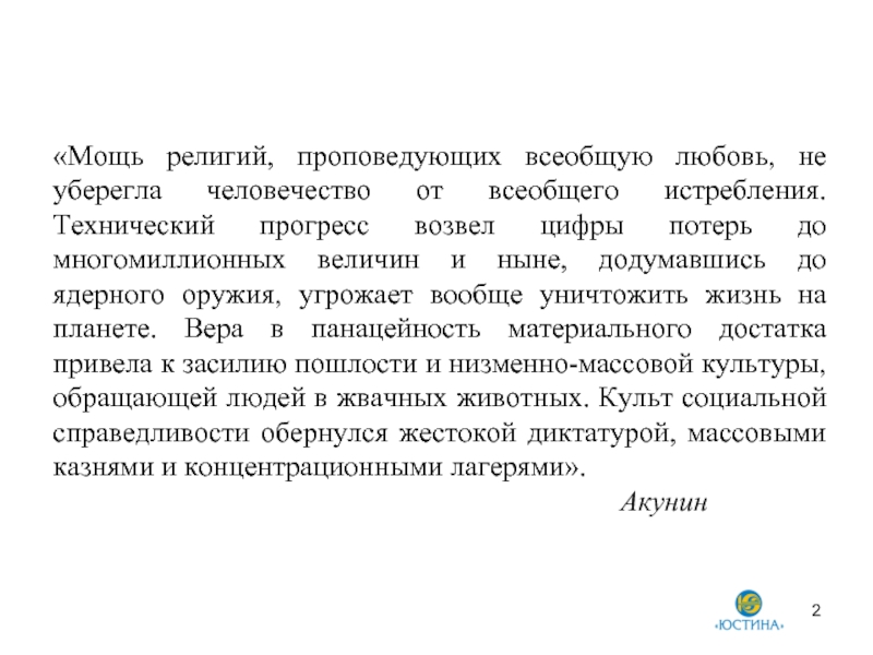 «Мощь религий, проповедующих всеобщую любовь, не уберегла человечество от всеобщего истребления.