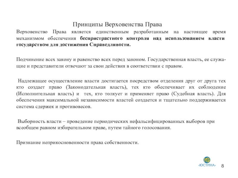 обеспечения беспристрастного контроля над использованием власти государством для достижения Справедливости.