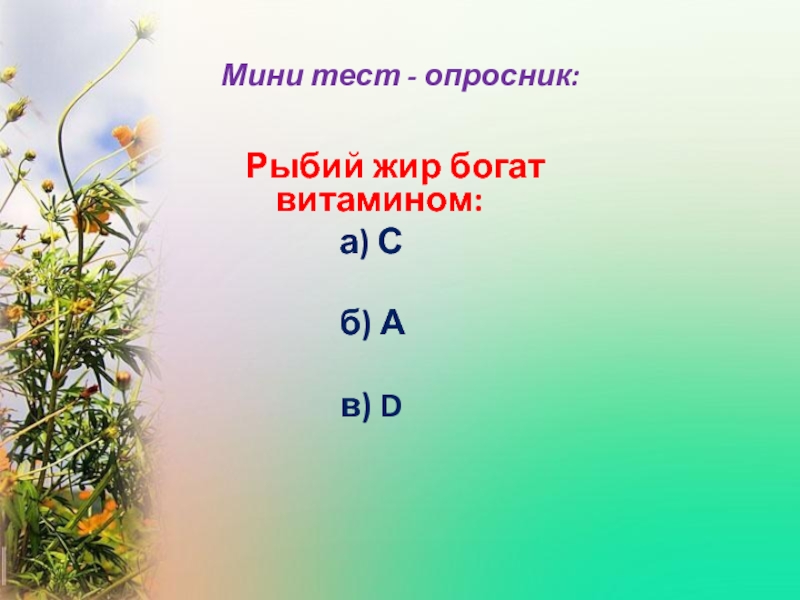 Слайд 13Рыбий жир богат витамином: