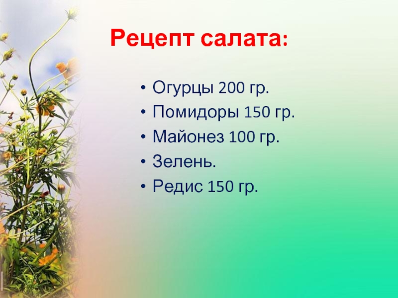 Слайд 9Рецепт салата:
