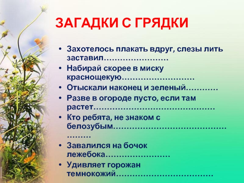 Слайд 8ЗАГАДКИ С ГРЯДКИ