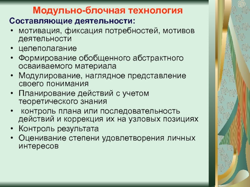 контроль плана или последовательность действий и коррекция их на узловых позициях