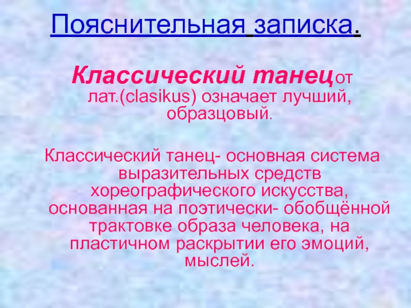 Классический танец от лат.(clasikus) означает лучший, образцовый.