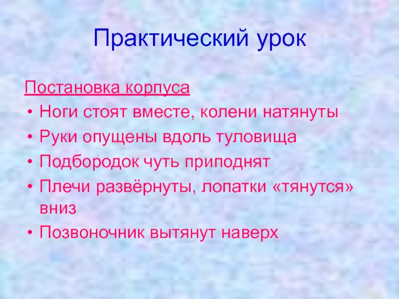 Слайд 11Постановка корпуса, позиции рук и ног.