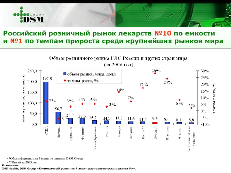 IMS Health, DSM Group «Ежемесячный розничный аудит фармацевтического рынка РФ».