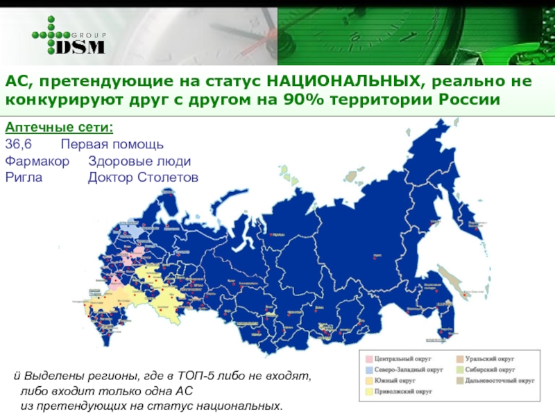 Выделены регионы, где в ТОП-5 либо не входят,
