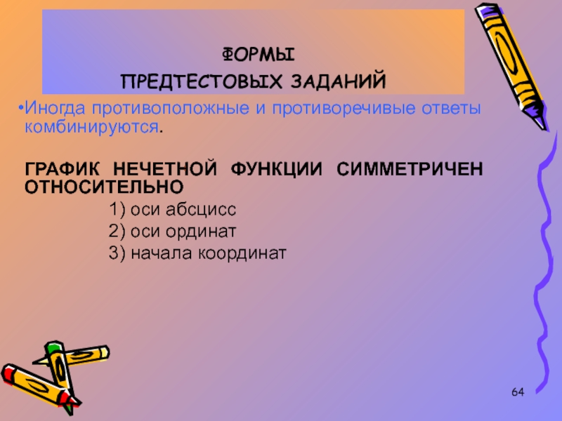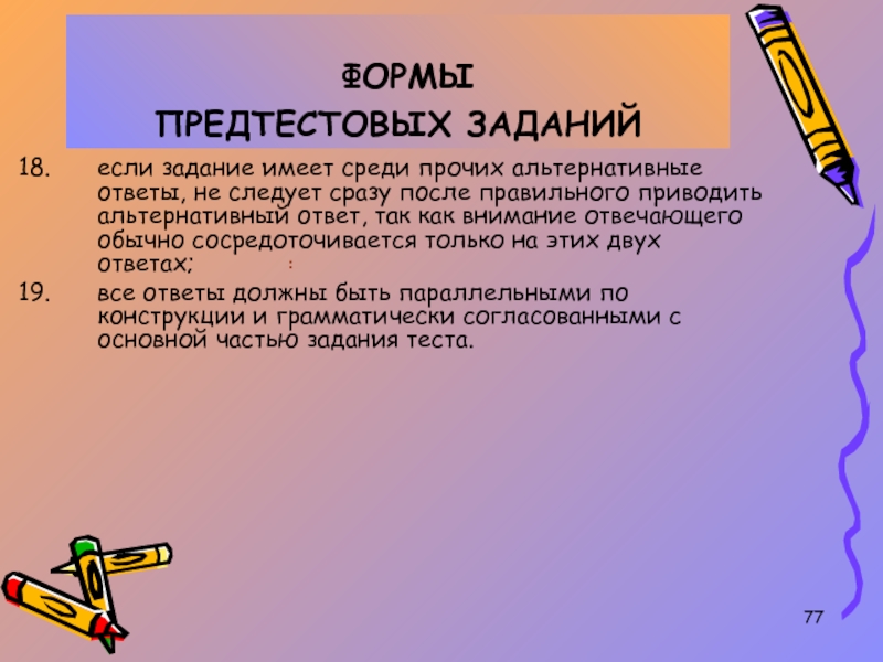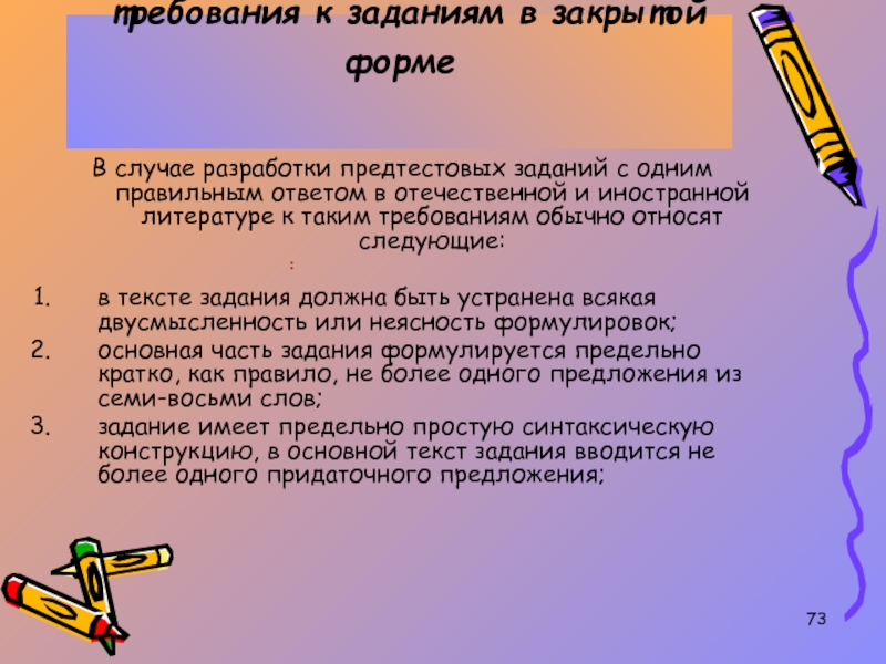 автора всегда возникает вопрос: остановиться ли на какой-нибудь одной форме заданий либо принять решение о совмещении различных форм в одном тесте? А если остановиться на одной, то какой из четырех форм отдать предпочтение?