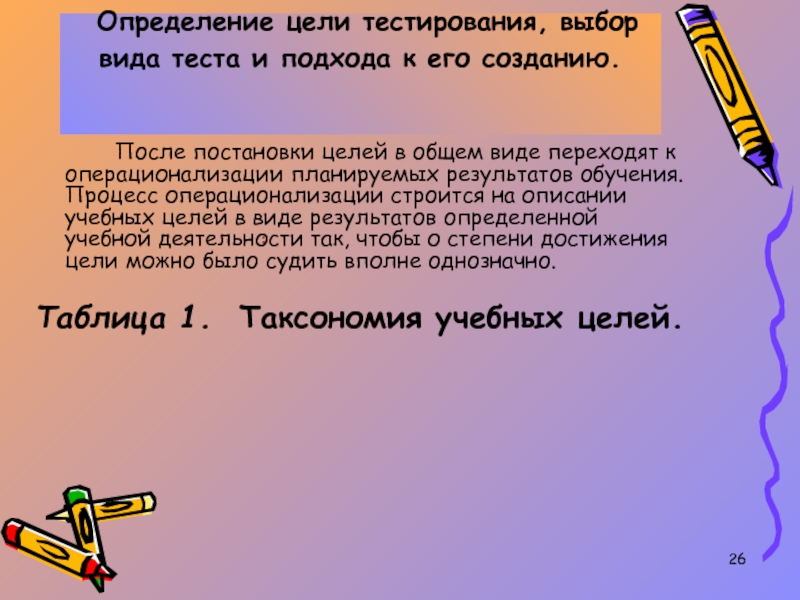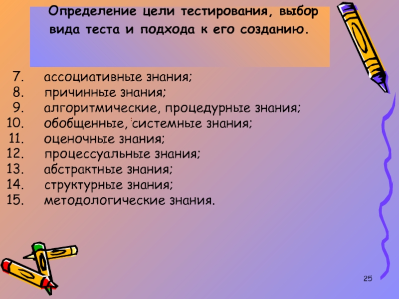 Слайд 25 Определение цели тестирования, выбор вида теста и подхода к его