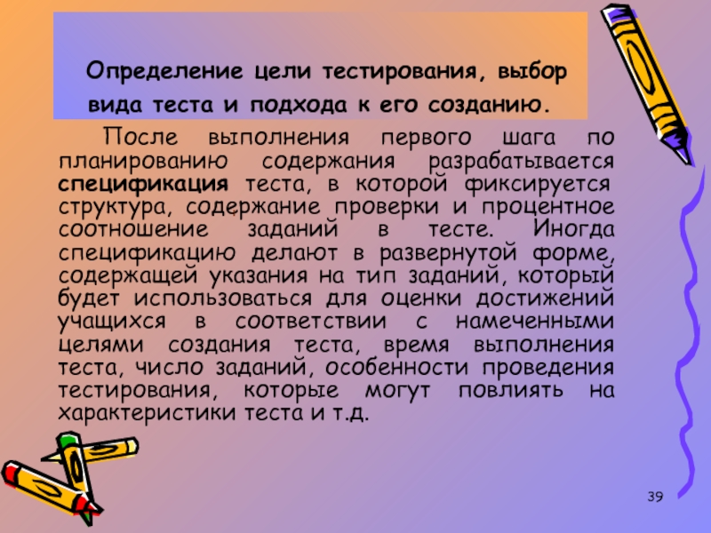 Слайд 21 Определение цели тестирования, выбор вида теста и подхода к его