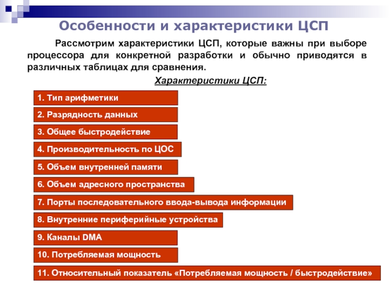 Рассмотрим характеристики ЦСП, которые важны при выборе процессора