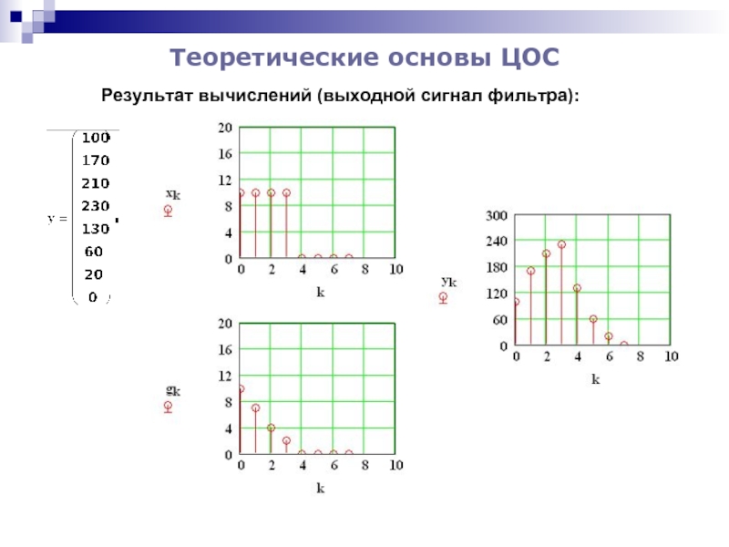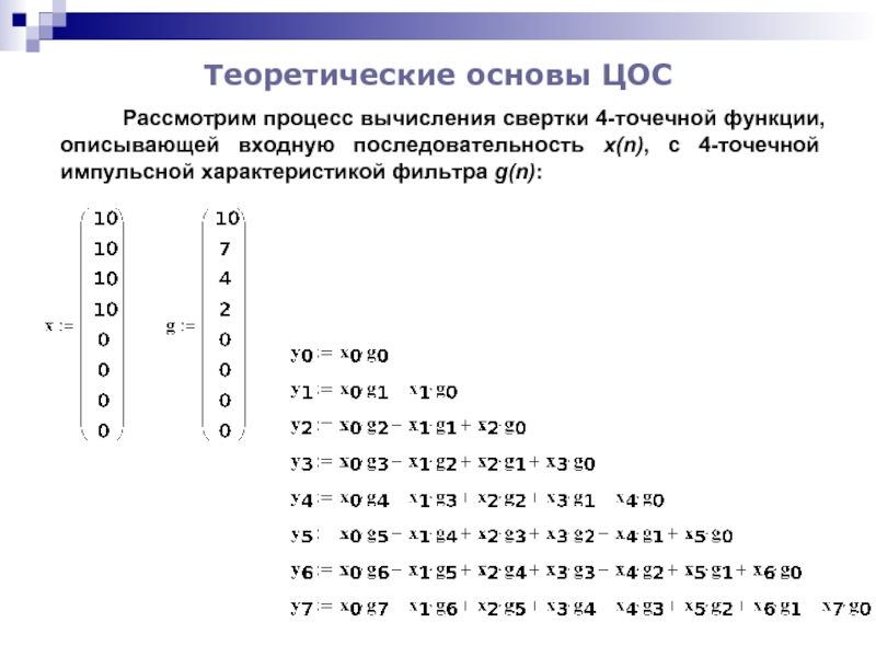 последовательность x(n), с 4-точечной импульсной характеристикой фильтра g(n):