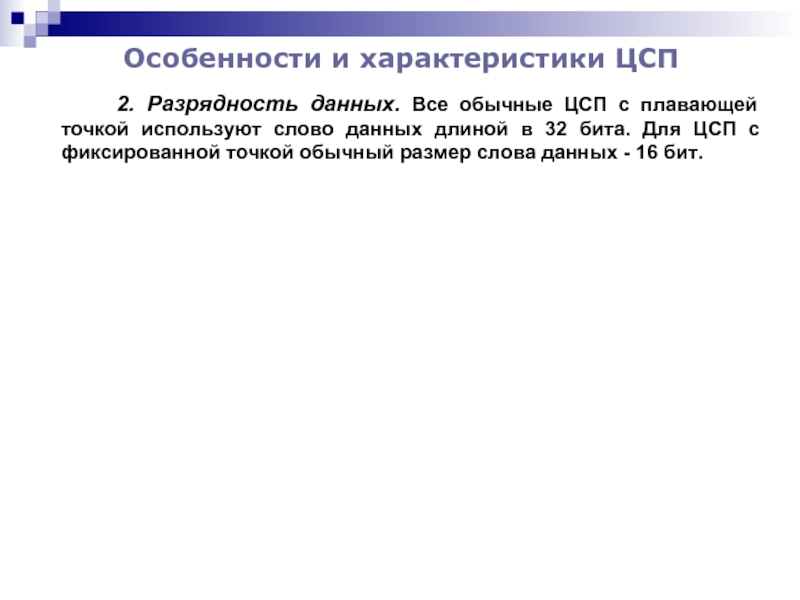 2. Разрядность данных. Все обычные ЦСП с плавающей