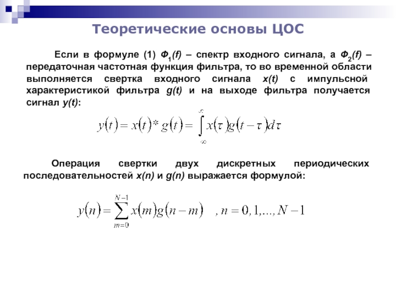 сигнала, а Ф2(f) – передаточная частотная функция фильтра, то во временной области выполняется свертка входного сигнала x(t) с импульсной характеристикой фильтра g(t) и на выходе фильтра получается сигнал y(t):