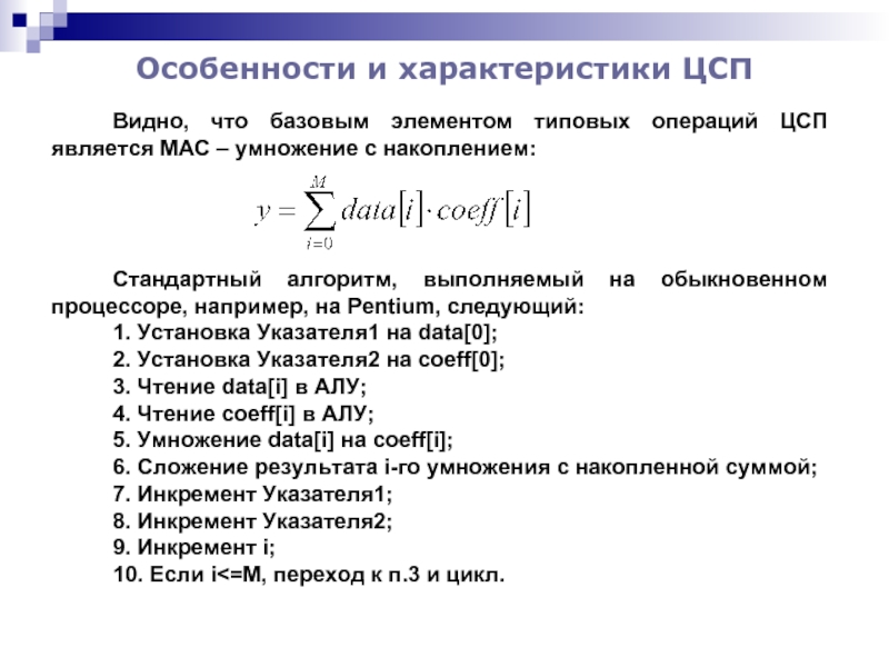 Слайд 23Видно, что базовым элементом типовых операций ЦСП является MAC – умножение