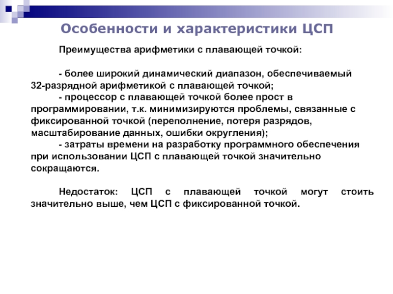 Недостаток: ЦСП с плавающей точкой могут стоить значительно выше, чем ЦСП с фиксированной точкой.