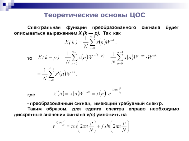 Спектральная функция преобразованного сигнала будет описываться выражением X