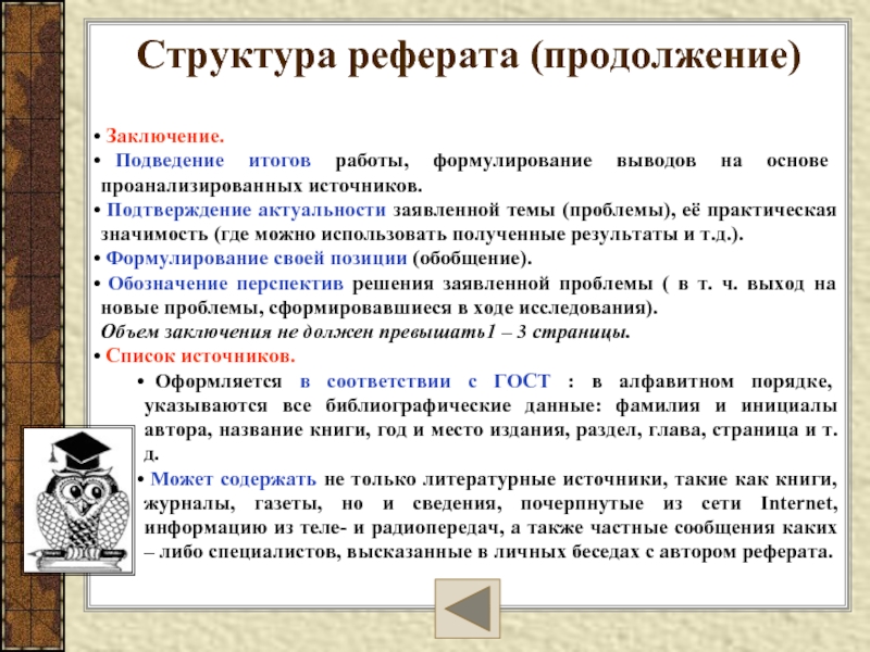 Реферат не является конспектом литературных источников и требует от автора анализа используемой информации и самостоятельных выводов