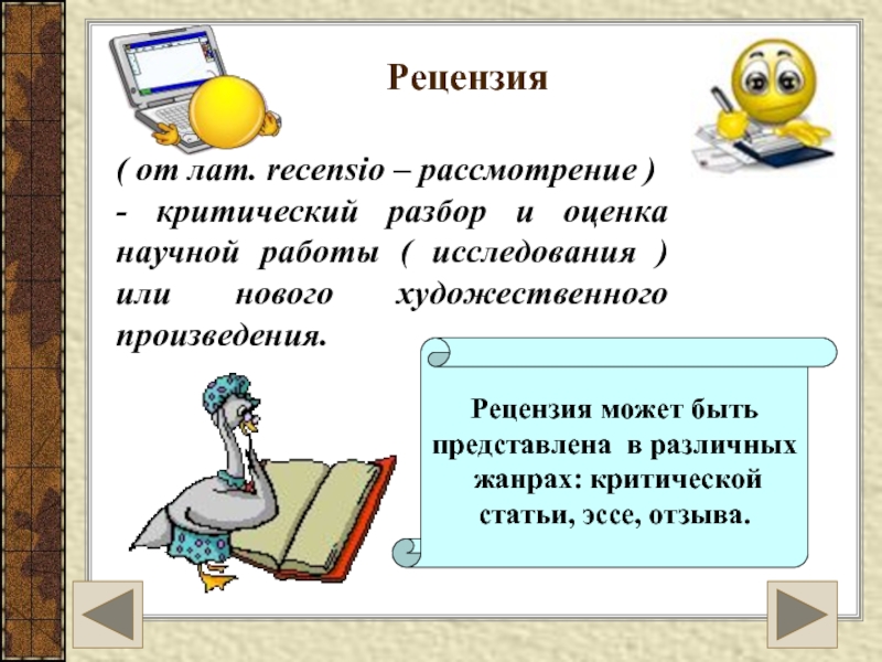 2) доклад на какую - либо тему, освещающий её на основе обзора литературы и других источников.