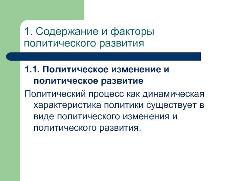 Слайд 21. Содержание и факторы политического развития