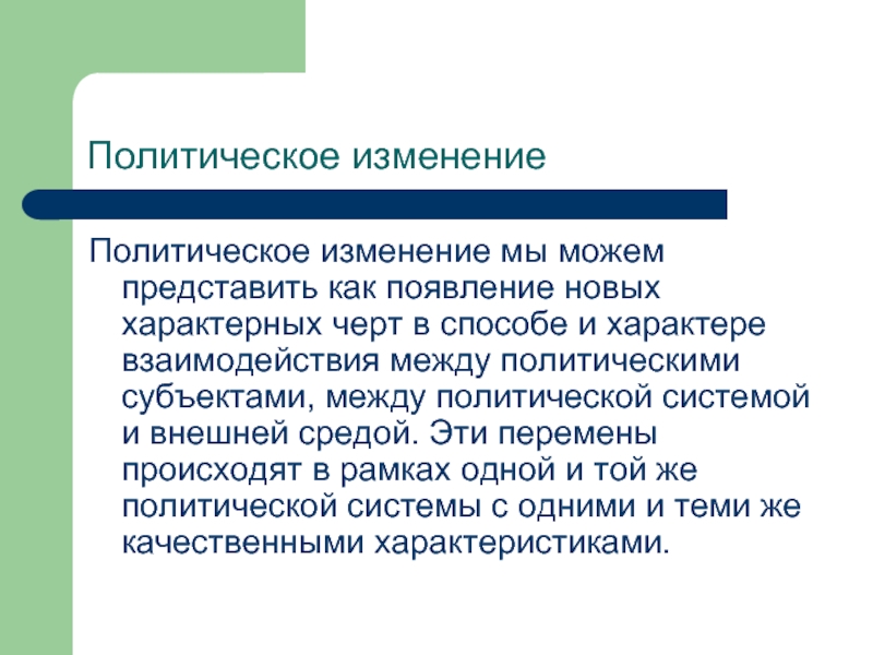 Политическое изменение мы можем представить как появление новых характерных черт