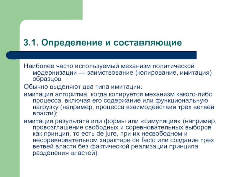 Наиболее часто используемый механизм политической модернизации — заимствование