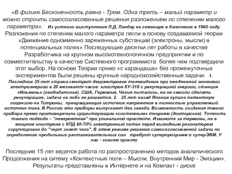 Теория потенциала - самая гармоничная и красивая в математике и физике. Ее важнейшим разделом является «Теория комплексных чисел». Она имеет подраздел «Конформные отображения», которые реализуют аналитическое продолжение. Так, распределение потенциала вдоль оси