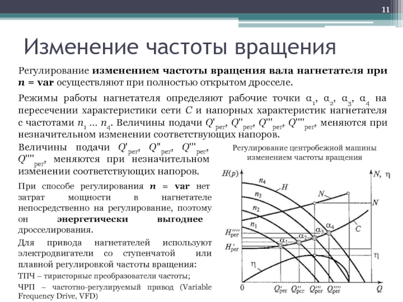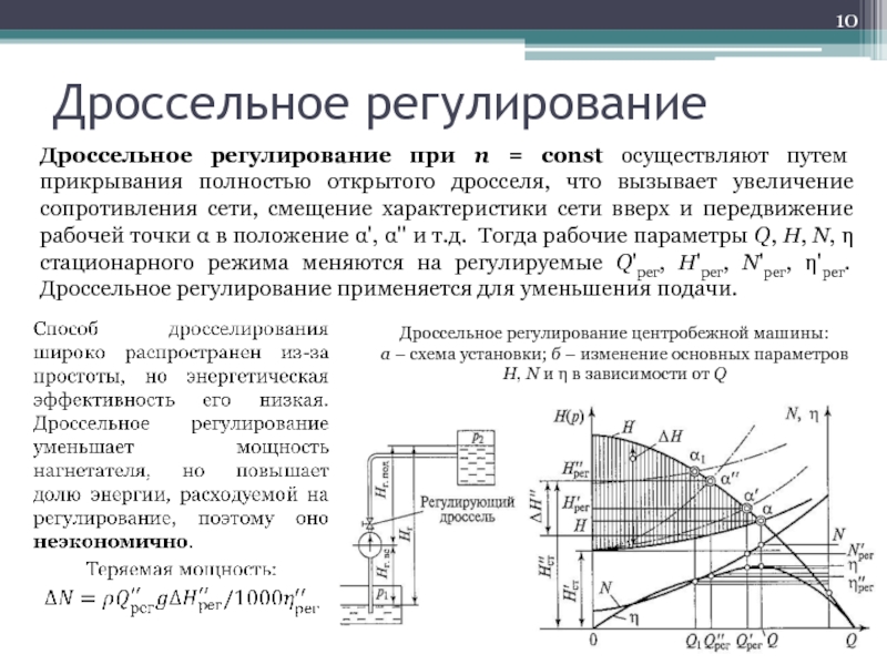 При способе регулирования n = var нет затрат мощности в нагнетателе непосредственно на регулирование, поэтому он энергетически выгоднее дросселирования.