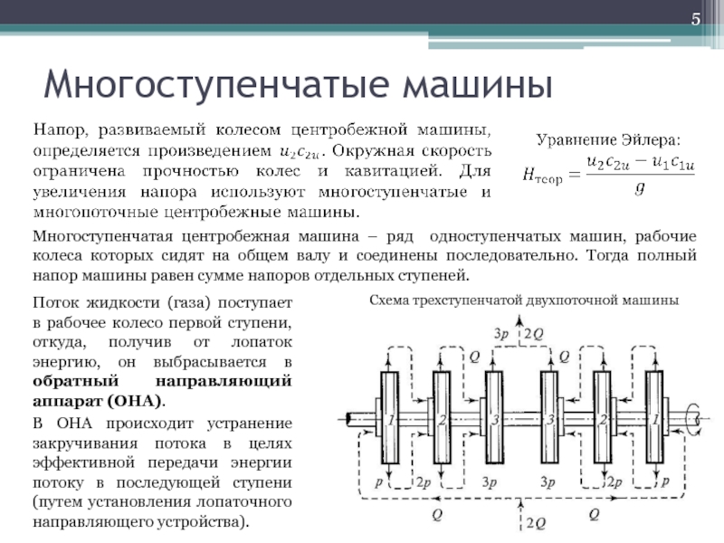 Поток жидкости (газа) поступает в рабочее колесо первой ступени, откуда, получив от лопаток энергию, он выбрасывается в обратный направляющий аппарат (ОНА).