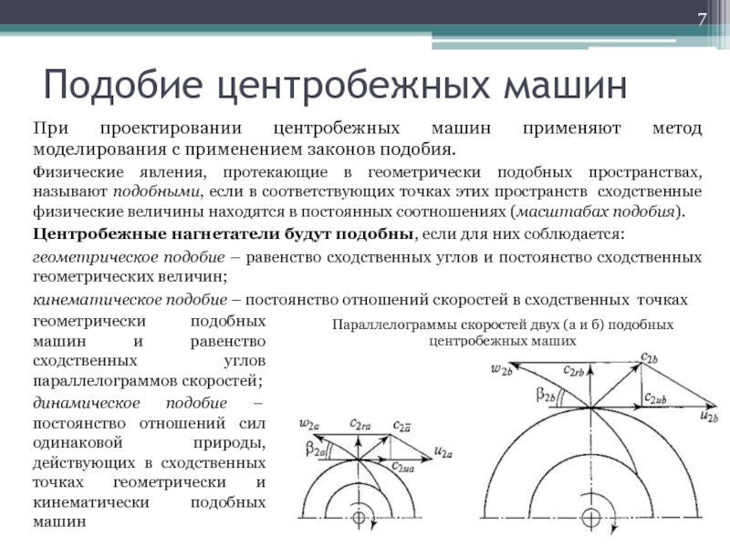 геометрически подобных машин и равенство сходственных углов параллелограммов скоростей;